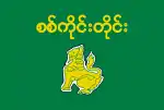 1974–2010 Former flagof Sagaing Division A green field with a yellow Burmese leograph and the yellow text "စစ်ကိုင်းတိုင်း" (meaning "Sagaing Division")