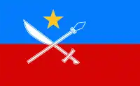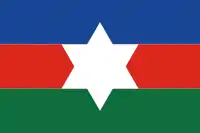 1955 Flag of the Pa'O Self-Administered Zone[12] White star within a blue canton on a red-green horizontal bicolour
