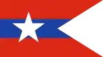 Flag of Kayin State Blue-white-red horizontal triband with a white star inset on top-left of blue band