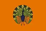 1974–2010 Former flag of Bago Division A blue field with a golden hamsa, and the text "ပဲခူးတိုင်း" ("Bago Division") under the bird