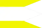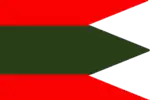 Flag of the Naga Self-Administered Zone[13][12] White over red bicolour with a green square in the upper hoist charged with two crossed spears and a tribal headdress