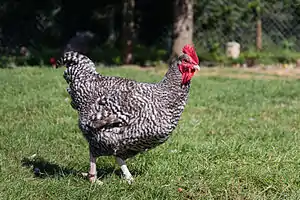 This is a list of the chicken breeds usually considered to be of French origin.[1][2][3] Some may have complex or obscure histories, so inclusion here does not necessarily imply that a breed is predominantly or exclusively from France. Not all of these breeds have existed continuously since they were first described; some, like the Pavilly, Merlerault and Caumont, became extinct in the early twentieth century and were later recreated.[4]