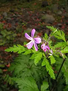 - Geranium arboreum – Hawai'i red cranesbill, Hawaiian red-flowered geranium