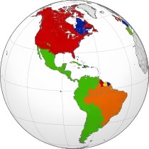 The approximate present-day distribution of Indo-European languages within the Americas by country: