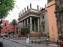 The first opera by a Mexican-born composer was Manuel de Zumaya's La Parténope, performed in 1711 before a private audience in the Viceroy's Palace in Mexico City.[4] However, the first Mexican composer to have his operas publicly staged was Manuel Arenzana, the maestro de capilla at Puebla Cathedral from 1792 to 1821.[5] He is known to have written at least two works performed during the 1805/1806 season at the Teatro Coliseo in Mexico City – El extrangero and Los dos ribales en amore. Both were short comic pieces.[6] The first Mexican opera seria was Paniagua's Catalina de Guisa (composed in 1845 and premiered in 1859).