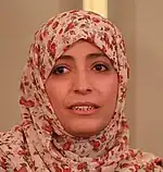 Tawakel Karman (b. 1979) | The 2011 Nobel Peace Prize was jointly given to Ellen Johnson Sirleaf, Leymah Gbowee and Karman "for their non-violent struggle for the safety of women and for women's rights to full participation in peace-building work".[53] | The first Arab woman and only Yemeni to receive a Nobel Prize.[54][55][56][57][58] | |