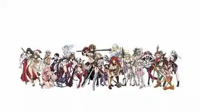 The characters of Queen's Blade, from left to right: Tomoe, Menace, Irma, Melona, Cattleya, Lana, Nanael, Nyx, Aldra, Claudette, Leina, Melpha, Risty, Elina, Echidna, Ymir, Airi, Alleyne, Nowa, and Shizuka.
