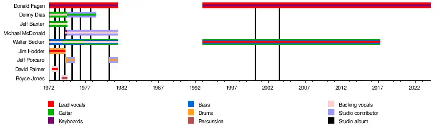 lead guitar | Randall, who had played on albums Can't Buy a Thrill, Katy Lied and The Royal Scam, made guest appearances in 2009[65] and 2019.[66][67] |