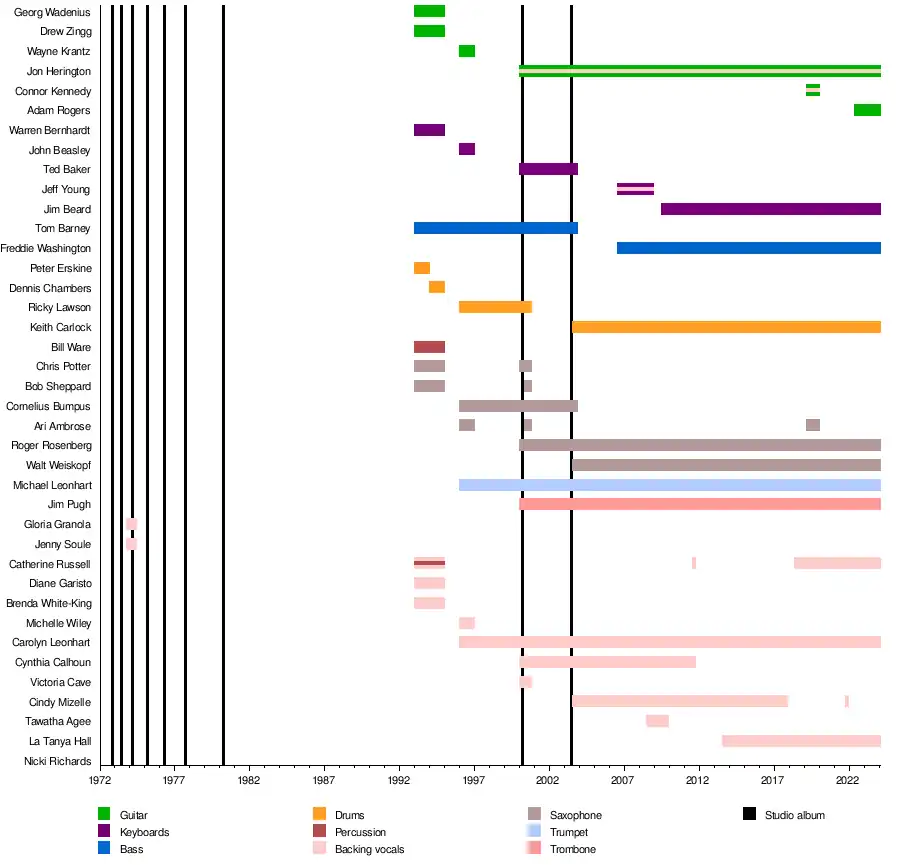 | Cornelius Bumpus | 1993–2003 (died 2004) | tenor saxophone |