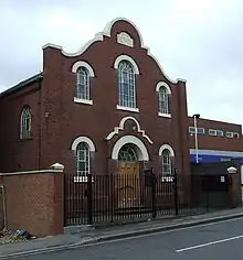 The Bethel Chapel, The Bars, Guildford, is a Strict Baptist Chapel affiliated to the Gospel Standard group of Strict & Particular Baptist churches.[20] The Church was established in 1879 and the present building opened in 1910.[21] Bethel still adheres to its original Articles of Faith and worship is conducted much as it was a century ago.[22] |