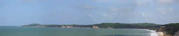 A panoramic image of Pipa Beach.