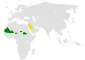 | Arabian ostrich | Struthio camelus ssp. syriacus | X | Extinct | N/A | Formerly widespread in the Arabian peninsula | ![]() |