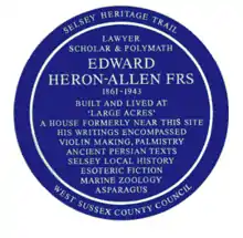 | Edward Heron-Allen(1861–1943) | Lawyer, Writer, Scholar, Scientist | 122 High Street Selsey West Sussex, PO20 0QE |