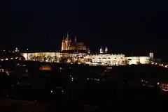 The Prague Castle at night.