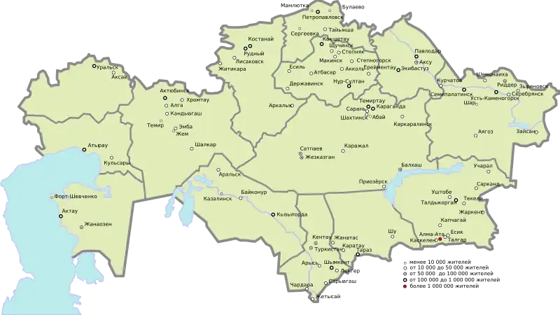 Provinces and main cities of Kazakhstan
