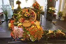 Decoration for ‘thanksgiving’ (Erntedank) in a Catholic church in Upper Austria.