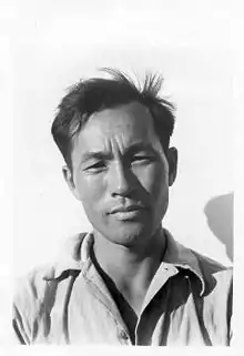 - Karl Yoneda (1906–1999) was born in Glendale, California, but his family moved back to Japan in 1913.[23][24] He became an activist early in his life.[23] With Japan on a path towards war, Yoneda returned to the United States rather than be drafted into the Japanese Army.[23] He arrived in San Francisco on December 14, 1926. He was taken to the Immigration Detention House on Angel Island, where he was detained for two months, despite having his California birth certificate.[24] Yoneda later moved to Los Angeles, where he found work organizing with the Trade Union Educational League, and later the Japanese Workers' Association.[23] Yoneda arrived at Manzanar on March 22, 1942, one of the first Japanese Americans to arrive as a volunteer to build the camp.[25] Yoneda later distinguished himself in service to the US, volunteering to serve in the Military Intelligence Service.[26] After the war, Yoneda continued to support progressive causes and civil and human rights issues.[23]