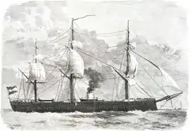 - ↑ Built in 1854 as a wooden steamship and converted to a casemate ironclad in 1865.[3]