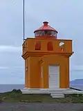 | Svalvogaviti | L4570 | Vestfirðir | 1920 | 54 m (177 ft) | 6 m (20 ft) | Orange square tower, red lantern house. | Active | ![]() |