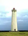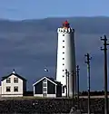 | Garðskagaviti (1944) | L4480 | Suðurnes | 1944 | 27 m (89 ft) | 10 m (33 ft) | White conical tower, red lantern house. | Active | ![]() |