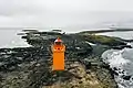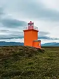 | Krýsuvíkurviti | L4826 | Suðurnes | 1965 | 61 m (200 ft) | 5 m (16 ft) | Orange cylindrical tower, red lantern house. | Active | ![]() |