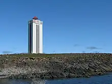 | Hafnarfjörður | L4495 | Reykjavik | 13 m (43 ft) | 6 m (20 ft) | Unpainted concrete cylindrical tower integral building. | Active | ![]() | |