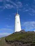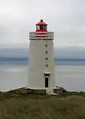 | Þrídrangaviti[4] | L4802 | Vestmannaeyjar | 1942 | 34 m (112 ft) | 4 m (13 ft) | White square tower, red lantern house. | Active | ![]() |