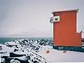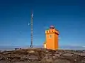 | Kópanesviti | L4567 | Vestfirðir | 1971 | 25 m (82 ft) | 7 m (23 ft) | Orange rectangular structure, white lantern house on roof. | Active | ![]() |