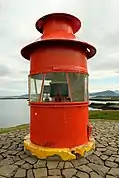 | Hafnarfjörður (1901) | L4495.1 | Reykjavik | 1901 | 6 m (20 ft) | White and red horizontal bands on square tower, integral lantern house. | Inactive | ![]() | |