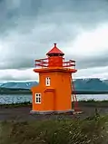 | Hríseyjarviti | L4660 | Norðurland Eystra | 1920 | 113 m (371 ft) | 9 m (30 ft) | Orange square tower, red lantern house. | Active | ![]() |