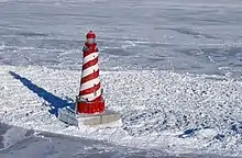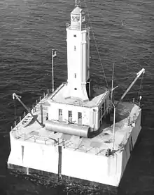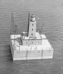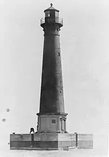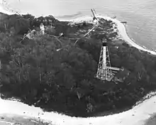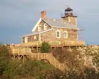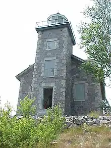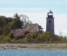 - ↑ Replaced with light on metal tower. Lighthouse is privately owned.