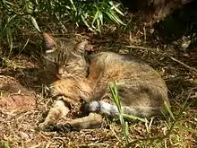 - ↑ Ghoddousi, A.; Belbachir, F.; Durant, S.M.; Herbst, M. & Rosen, T. (2022). "Felis lybica". IUCN Red List of Threatened Species. 2022: e.T131299383A154907281. doi:10.2305/IUCN.UK.2022-1.RLTS.T131299383A154907281.en.