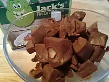 Cubes of young green jackfruit pulp sold as a meat substitute