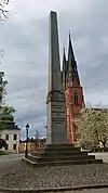 Obelisk in OdinslundUppsalaSweden183259°51′25″N 17°37′56″E / 59.85694°N 17.63222°E / 59.85694; 17.63222In memory of king Gustav II Adolf, donated by king Charles XIV John.[14]