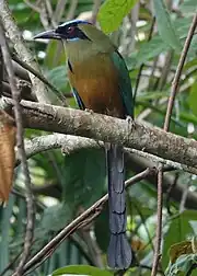 Motmots are birds in the family Momotidae in the order Coraciiformes. There are currently 14 extant species of motmots recognised by the International Ornithologists' Union.[1]