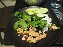 - Sate babi – Indonesian dish of spicy seasoned, skewered and grilled meat, served with a sauce