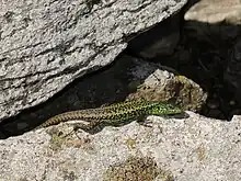 - ↑ Wolfgang Böhme, Valentin Pérez-Mellado, Marc Cheylan, Hans Konrad Nettmann, László Krecsák, Bogoljub Sterijovski, Benedikt Schmidt, Petros Lymberakis, Richard Podloucky, Roberto Sindaco, Aziz Avci (2009). "Podarcis muralis". IUCN Red List of Threatened Species. 2009: e.T61550A12514105. doi:10.2305/IUCN.UK.2009.RLTS.T61550A12514105.en. Retrieved 19 November 2021.