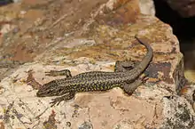 {{cite journal}}: CS1 maint: multiple names: authors list (link) - ↑ Jose Antonio Mateo Miras, Marc Cheylan, M. Saïd Nouira, Ulrich Joger, Paulo Sá-Sousa, Valentin Pérez-Mellado, Iñigo Martínez-Solano (2009). "Podarcis hispanicus". IUCN Red List of Threatened Species. 2009: e.T61548A12513281. doi:10.2305/IUCN.UK.2009.RLTS.T61548A12513281.en. Retrieved 19 November 2021.