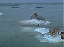 | Chandragupta | The supercarrier Chandragupta sank in a January storm in the Pacific Ocean. 68 crewmembers died with the ship, which left an enormous trail of wreckage in the water, scattered over a 36-mile (58 km) area.[1] Researchers ascribed the cause of an incident to an encounter with a rogue wave.[2] This is one of the 22 supercarriers believed to have been sunk by rogue waves from 1968 to 1995, and the incident associated with the greatest loss of life. |