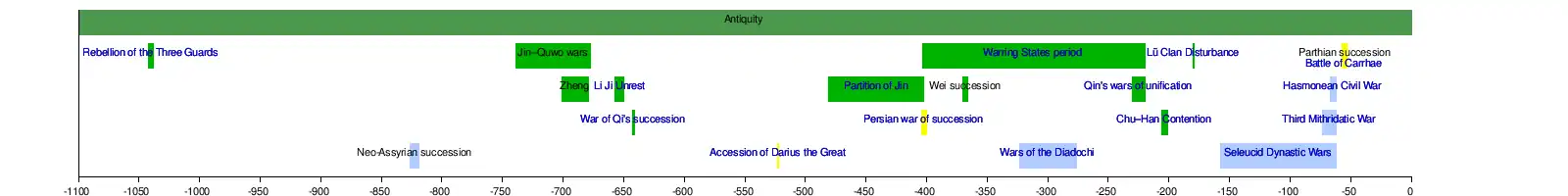 - Jin–Quwo wars (739–678 BCE), dynastic struggles between two branches of Jin's ruling house[33]