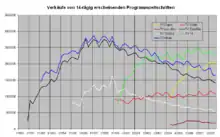 In Italy the most important listing magazine has always been TV Sorrisi e Canzoni, with a weekly circulation of over 2 million in the late 80s.[5]