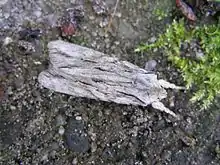 The wingspan is 39–44 mm. Forewing pale grey, dusted with olive grey; lines strongly dentate, but much obscured, marked by short oblique costal streaks; upper stigmata ill-defined, but united at their base by a long black line; the reniform with fulvous in lower half; claviform elongate, black-edged, united by a short black streak with outer line; a well-marked black streak from base on submedian fold; submarginal line indicated only by black dentate marks preceding it, of which the two on the folds are longest; fringe mottled dark and light grey; hindwing pale brownish grey, darker towards termen; ab. sabinae Geyer is rather smaller, blue-grey, more distinctly marked, especially the median shade and submarginal teeth; reniform stigma with hardly any fulvous in it; the two black lines on submedian fold hardly visible.[1]