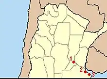 In 1909, a group of Lithuanian immigrants from the cities of Ensenada and Berisso founded the Lithuanian Mutual Aid Society Vargdienis, whose prominent members were the Lithuanian gentlemen Rimavičius, Pavilonis, Bogužas and Baltušis.[2] With less specific dates it is known that even before the First World War there had been organisations of Lithuanian immigrants in Villa Diego, near Rosario, Santa Fe (Aušros žvaigždė) and in the city of Avellaneda (Susivienijimas lietuvių Argentinoje). The collectivity of Berisso meanwhile adopted the name of Nemunas, which retains to the present.[3] The Lithuanian diaspora in Argentina have their own radio programme called "Echoes of Lithuania" (Ecos de Lituania).