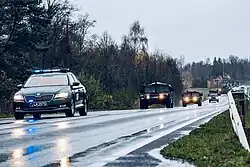 The Lithuanian Military Police (Lithuanian: Lietuvos karo policija) is a law enforcement agency operating within the national defence system of the Republic of Lithuania and is a part of the Lithuanian Armed Forces. Military Police are directly subordinate to the Chief of Defence of the Republic of Lithuania. Main tasks of Military Police include preventing of crimes and other breaches of legal acts, investigating and disclosing offences, enforcing law and order in military territories and in the armed forces and ensuring the security of military traffic.