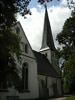 This was built in the first half of the 13th century as Saint Lawrence's. It consists of a late Romanesque hall church with a western tower and a three-halled nave with a tower built before it.