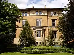 These buildings, built between 1860 and 1880, nowadays house the citizen and culture centre with the town archive. The park was named after the manufacturing family Dresler, who once owned the park. In the park are found the "yellow villa", the "white villa", the wagon shed, the coachhouse (today a restaurant and inn called the Kutscherhaus – the same in German), the music pavilion and the garden house. The wagon shed houses a daycare centre.