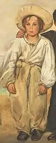 This and other 1860s child portraits by Manet are youthful works by the artist, even if their sometimes sketchy style prefigures his impressionist works from the 1870s and 1880s. After Lange, children mainly appeared as part of a larger work or in profile in Manet's work – for example, his 1862 Music in the Tuileries includes two children playing as just one part of a representation of Parisian society and his 1866 The Fifer (still strongly Spanish-influenced) draws closer to his impressionist style.