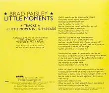 "Little Moments" is a song co-written and recorded by American country music singer Brad Paisley. It was released in September 2003 as the second single from Paisley's album Mud on the Tires. Paisley wrote this song with Chris DuBois.