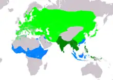 - C. d. curonicus J. F. Gmelin, 1789 - from Eurasia, Russian Fareast, Japan, Korea, China to North Africa. Winter spends in Sahara, Sri Lanka, to Indonesia and China.