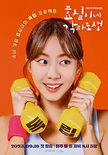 Live Your Own Life[4] (Korean: 효심이네 각자도생) is an ongoing South Korean television series starring Uee, Ha Jun, and Go Joo-won. The series is about a daughter who devoted her whole life to her family, but now breaking away because of hard time they gave and living an independent life. It premiered on KBS2 on September 16, 2023, and airs every Saturday and Sunday at 20:05 (KST).[5]